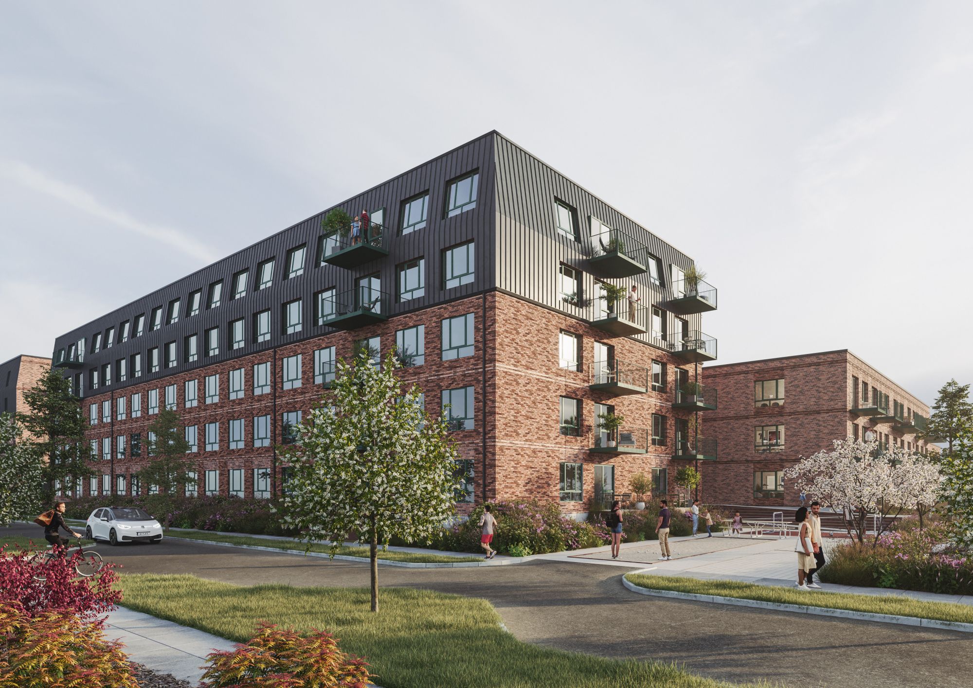 Horisonten Ishøj is a modern residential project with 148 apartments on Industriskellet in Ishøj, which we are developing in collaboration with Ingcon A/S. The project will feature contemporary multi-storey buildings with red brick facades, green recreational areas, and functional layouts that create great living conditions for families, singles, and seniors alike.
